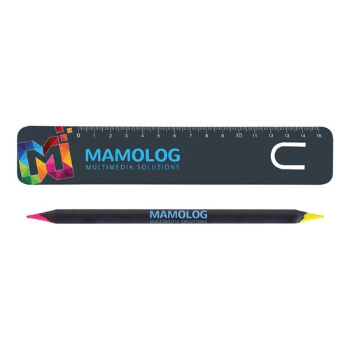 KIT BUREAU bi- coul comprenant 1 REGLE CARTON 15 cm + 1 CRAYON bi- coul graph- FLUO 17,6 cm Prestige BLACK taillé des 2 côtés, VERNIS NOIR