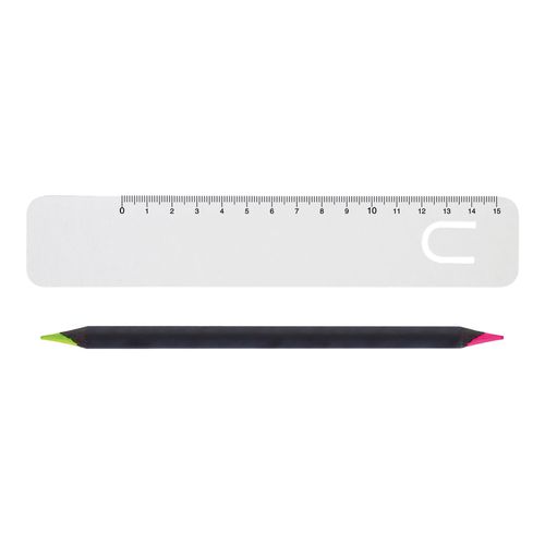 Dimensions :SACHET 19,5 x 4,5 - REGLE CARTON 19 x 3,5 - surligneur 17,6 x 0,85 cm