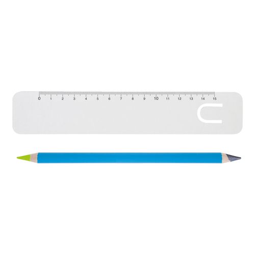 KIT BUREAU bi- coul comprenant 1 REGLE CARTON 15 cm + 1 CRAYON bi- coul graph- FLUO 17,6 cm Prestige, taillé des 2 côtés, VERNIS PANTONE