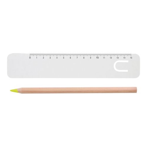KIT BUREAU FLUO comprenant 1 REGLE CARTON 15 cm + 1 CRAYON surligneur 17,6 cm Prestige Naturel, tête coupée, VERNIS INCOLORE
