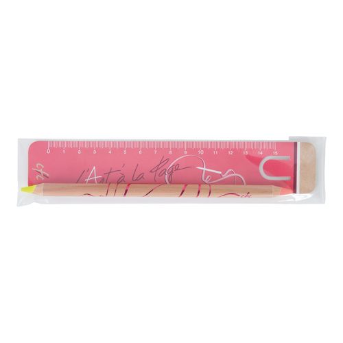 Dimensions :SACHET 19,5 x 4,5 - REGLE CARTON 19 x 3,5 - surligneur 17,6 x 0,85 cm