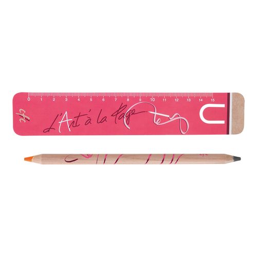 KIT BUREAU bi- coul comprenant 1 REGLE CARTON 15 cm + 1 CRAYON bi- coul graph- FLUO 17,6 cm Prestige Naturel, taillé des 2 côtés, VERNIS INCOLORE