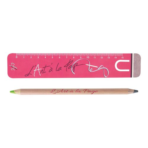 KIT BUREAU bi- coul comprenant 1 REGLE CARTON 15 cm + 1 CRAYON bi- coul graph- FLUO 17,6 cmPrestige Naturel, taillé des 2 côtés, VERNIS INCOLORE