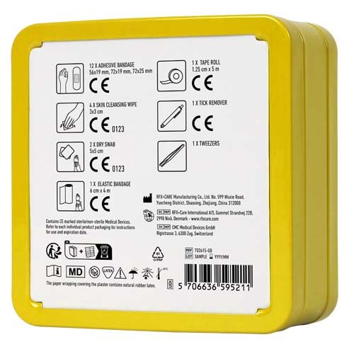 Cette trousse de premiers soins est indispensable à tout propriétaire d’animal de compagnie. Elle vous aidera à soigner les blessures mineures ou les accidents lors des promenades et vous fournira les outils nécessaires pour traiter votre animal après une piqûre de tique. Elle comprend 12 pansements lavables, 4 tampons nettoyants pour la peau, 2 écouvillons secs, un tire- tique, un bandage élastique, une pince à épiler et un rouleau de sparadrap. Tous les produits de soin inclus sont conformes aux réglementations européennes applicables, garantissant une utilisation sûre et fiable lorsque votre animal en a le plus besoin. Fourni dans une boîte réutilisable et recyclable.