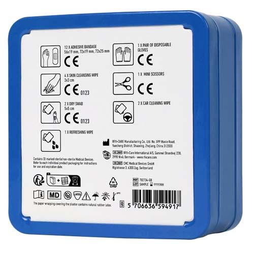 Cette trousse de premiers secours compacte est un indispensable de la voiture, pour être toujours prêt en cas d’accidents mineurs et de petites blessures sur la route. Elle contient 12 pansements résistants à l’eau, 2 tampons nettoyants pour la peau, 2 écouvillons secs, 1 paire de gants jetables, 2 paquets de lingettes nettoyantes pour voiture, 1 lingette rafraîchissante et 1 paire de mini- ciseaux. Tous les articles de premiers secours et de soins inclus sont conformes aux réglementations européennes en vigueur, pour une fiabilité sans faille durant vos trajets. Fourni dans une boîte réutilisable et recyclable.