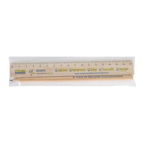 KIT ECO comprenant 1 REGLE BOIS ECO 17 cm SANS VERNIS + 1 CRAYON 17,6 cm ECO, ROND, VERNIS INCOLORE, tête coupée