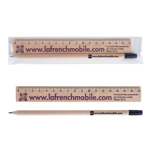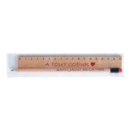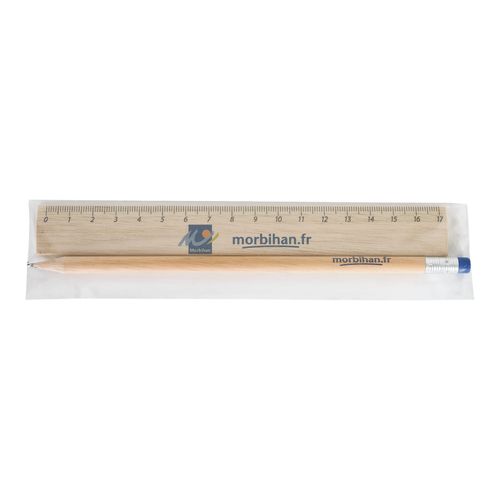 Dimensions :SACHET 20 x 4,5 cm - REGLE 2,2 x 17,6 x 0,3 cm - CRAYON 19 x 0,75 cm