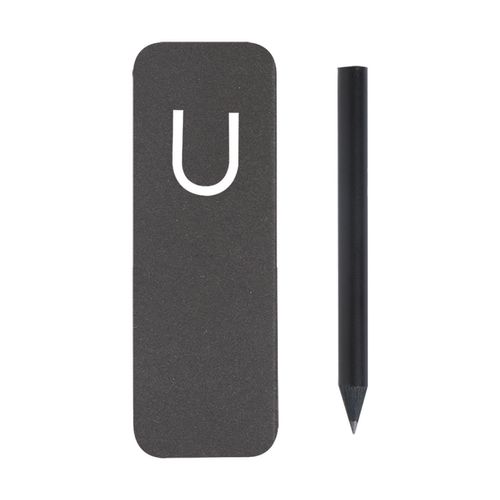 Kit marque- page comprenant 1 marque page carton BLACK + 1 crayon 8,7 cm black, rond, vernis noir, tête coupée
