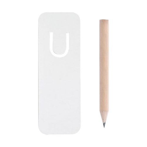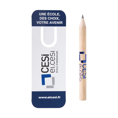 Kit marque- page comprenant 1 marque page carton + 1 crayon 8,7 cm éco, rond, vernis incolore, tête coupée