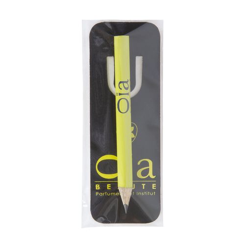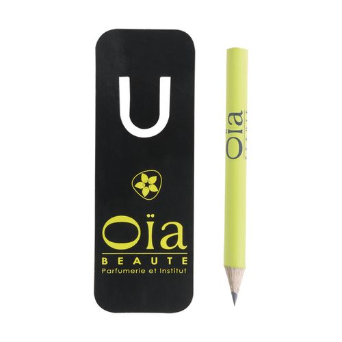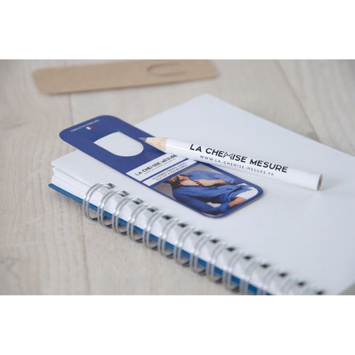 Kit marque- page comprenant 1 marque page carton + 1 crayon 8,7 cm éco, rond, vernis pantone, tête coupée