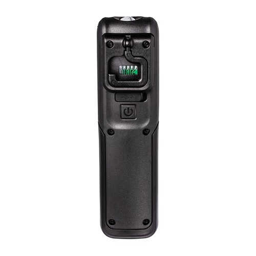La lampe de poche multifonctions pour la maison et la voiture dispose d’une batterie intégrée (1 200 mA). L’affichage de niveau de chargement montre la quantité d’énergie restante. Elle dispose d’une lampe COB latérale (3 watts, 160 lumen) et d’une lampe LED à l’avant (50 lumen).