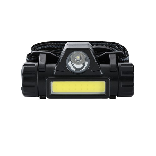 La lampe frontale à sangle en caoutchouc robuste et réglable dispose d’une LED de 100 Lumen et d’une ampoule COB de 150 Lumen. La lampe peut être détachée de la sangle pour être fixée sur des surfaces aimantées par un aimant pour l’éclairage. Une batterie est intégrée à la lampe et peut être chargée par un port USB- C protégé contre les projections d’eau. Le temps d’éclairage s’élève à environ 2 h.