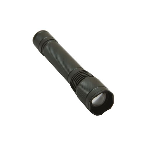 Manche en aluminium anodisé. LED 3W. Système de focus permettant d'augmenter la distance maximum d'éclairage en concentrant le faisceau. Joints sur chaque pas de vis pour une meilleure étanchéité (ne pas immerger). Bouton on / off au talon de la lampe de poche. Fonctionne avec 2 piles LR06 AA (fournies). Puissance de la LED : 3W (150 lumens). Longueur du faisceau : 100m. Niveau d'étanchéité : IPX-4. Livrée dans un coffret cadeau en carton.