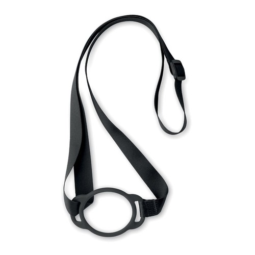 Lanyard avec porte- gobelet en silicone (6 cm de diamètre) et boucle réglable en PP. Lanyard de 20 mm de large.