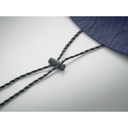 Chapeau de pêcheur déperlant en polyester, livré avec une pochette en tissu avec mousqueton en ABS. 64 gr/m².