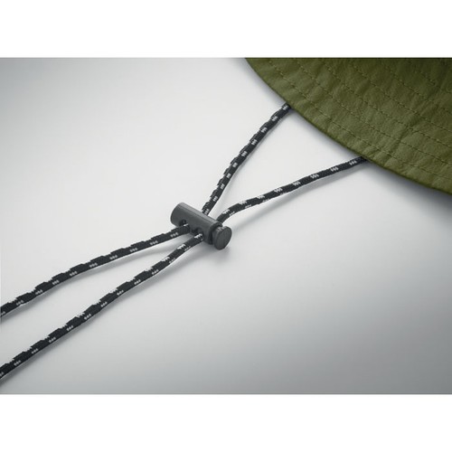 Chapeau de pêcheur déperlant en polyester, livré avec une pochette en tissu avec mousqueton en ABS. 64 gr/m².