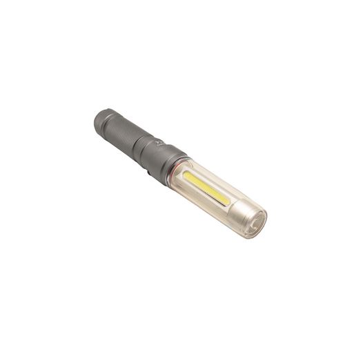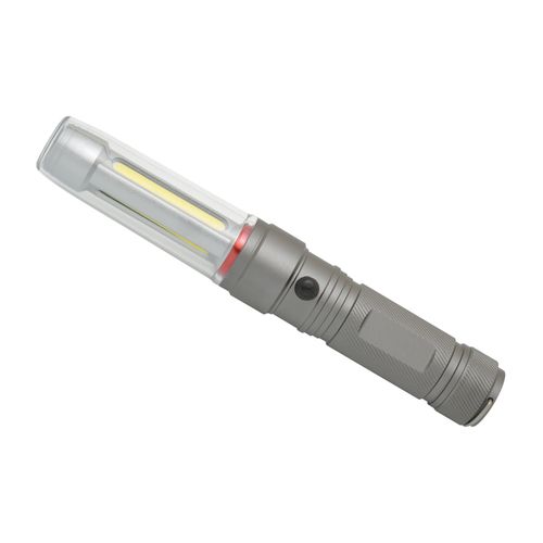 Manche en aluminium anodisé. 2 fonctions avec en tout 3 modes d'éclairage : Lampe torche LED ou lanterne COB (Blanc ou rouge clignotant). Puissant aimant à l'arrière de la lampe de poche. Anneau de suspension. Fonctionne avec 3 piles AAA (fournies). Puissance de la LED : 3W (220 lumens). Longueur du faisceau : 20m. Niveau d'étanchéité : IPX-4.