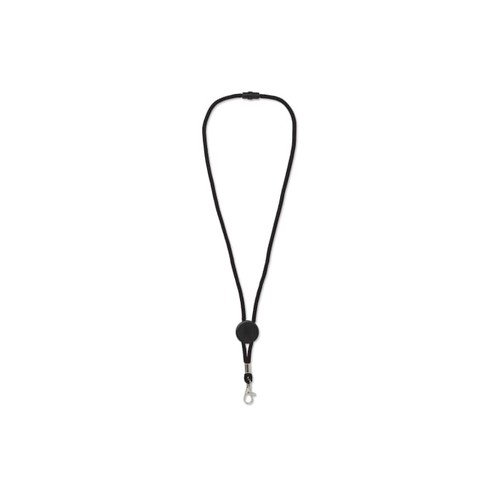 Lanyard en paracord avec clip de sécurité plastique et mousqueton métal. Le lanyard est ajustable au moyen de la partie centrale plastique sur laquelle peut être apposé un doming.