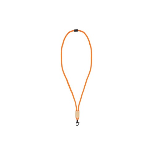 Cordon- clé en paracorde R- PET avec connexion de sécurité en plastique et accents noirs. Le cordon est réglable à l'aide d'un curseur en bambou qui offre un large espace de marquage.