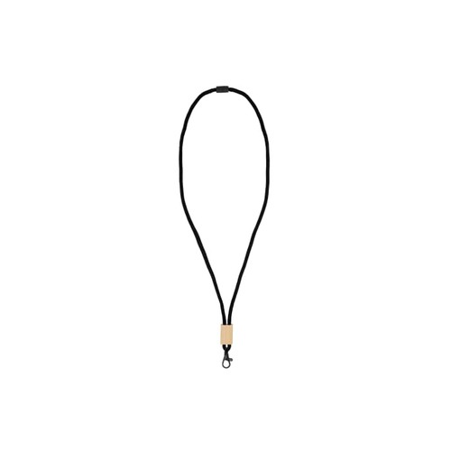 Cordon- clé en paracorde R- PET avec connexion de sécurité en plastique et accents noirs. Le cordon est réglable à l'aide d'un curseur en bambou qui offre un large espace de marquage.