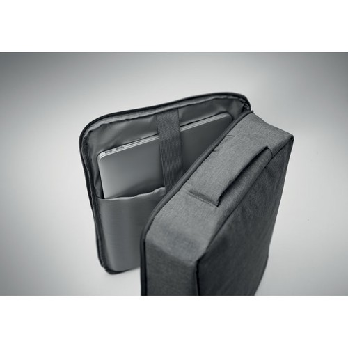 Sac à dos pour ordinateur de 15 '' en RPET 300D et doublure en RPET 210D. Comprend un compartiment pour ordinateur, 2 poches intérieures, 2 poches intérieures pour stylos et 2 poignées de transport rembourrées. Dos et bretelles rembourrés. Passant pour trolley au dos.