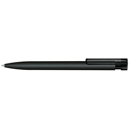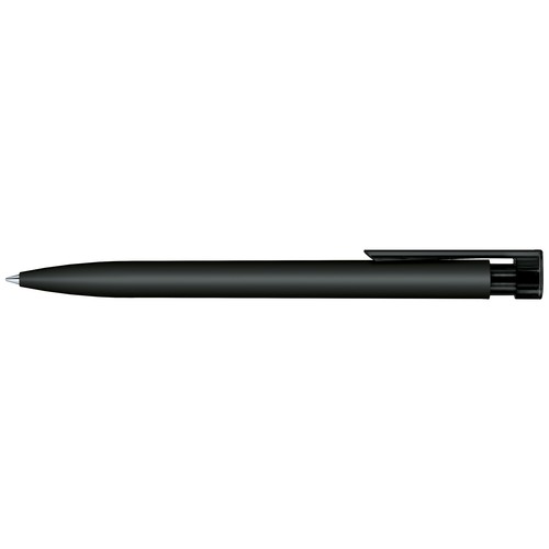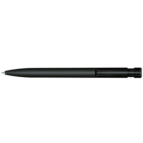 Stylo à bille rétractable.Plastique avec habillage soft touch (effet peau de pêche), partie supérieure et clip transparents