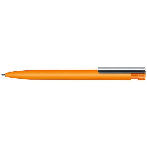 Stylo à bille rétractable.Plastique avec habillage soft touch(effet peau de pêche), poussoir clear,clip en métal,