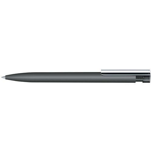 Stylo à bille rétractable.Plastique avec habillage soft touch(effet peau de pêche), poussoir clear,clip en métal,