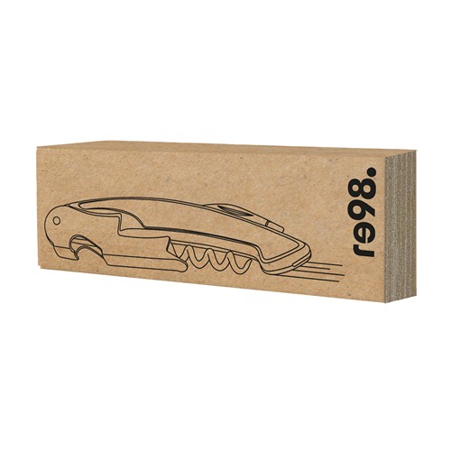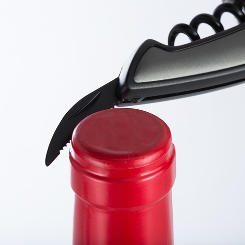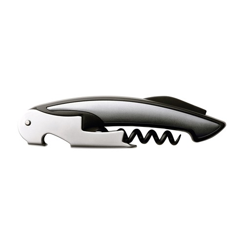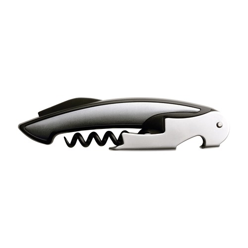 Ouvrez les bouteilles de vin comme un pro ! Ce couteau sommelier haut de gamme en aluminium et acier inoxydable dispose d’un décapsuleur, d’un couteau (découpeur), d’une tige (tire- bouchon) et d’un levier. La tige en acier inoxydable convient pour les bouchons naturels et synthétiques. La lampe du découpeur est aiguisée en dents de scie et évite que l’opercule ne se déchire au moment de le couper. Ce couteau sommelier se replie pour prendre le moins de place possible. Personnalisable avec une impression 1c ou une gravure laser.