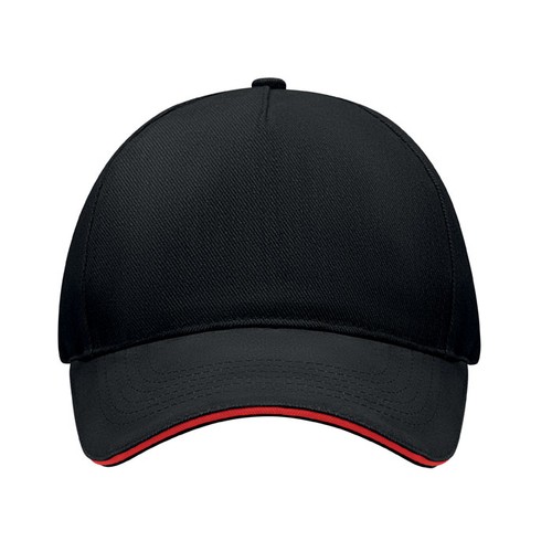 Casquette de baseball à 5 pans en coton sergé brossé lourd 260 gm/m2 avec boucle en acier argenté. 4 oeillets brodés de couleur assortie. Taille 7 1/4.
