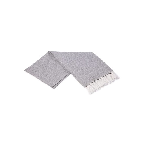 Une belle serviette de hammam avec franges, fabriquée à partir de 70% de coton recyclé, les fils colorés sont mélangés au blanc pour donner une impression chinée.