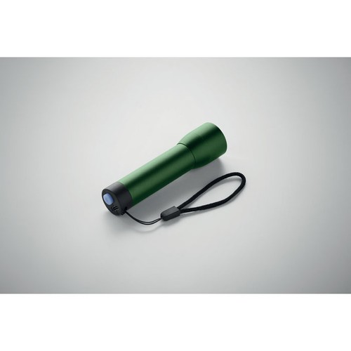 Lampe torche rechargeable en aluminium recyclé avec plusieurs modes d’éclairage et fonction zoom avant/arrière. Livrée avec une batterie lithium 14500 remplaçable. Puissante et durable.