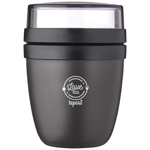 La lunch box Ellipse Mini est idéale pour une variété de collations, comme du yaourt avec du muesli ou de la soupe avec des croûtons. Dotée de deux compartiments intelligents dans un récipient robuste, elle permet de séparer soigneusement les ingrédients. Grâce à sa taille compacte, elle se glisse facilement dans un sac d’école pour un repas rapide et pratique. Le compartiment supérieur transparent offre une capacité de 120 ml. Il est idéal pour environ 50 grammes de muesli ou de fruits. Le compartiment inférieur a une capacité de 300 ml. Étanche et lavable au lave- vaisselle. Sans bisphénol A.
