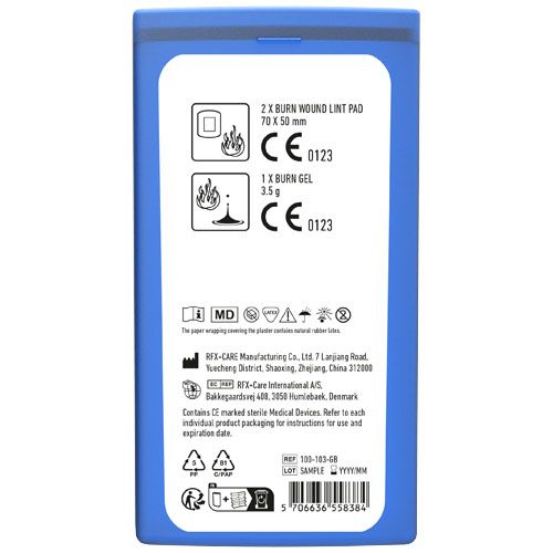 Le kit en cas de brulure à conserver dans votre sac.Contient:2 compresses pour les brulures, 1 gel pour les brulures. Tous les contenus à l'intérieur des kits sont conformes à la législation européenne. Le prix comprend l'étiquette personnalisée.