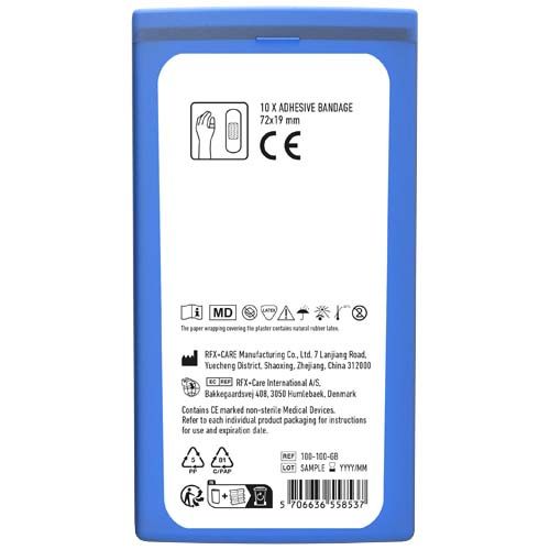 Le kit pansements à toujours avoir avec vous. Contient:10 pansements standard. Tous les contenus à l'intérieur des kits sont conformes à la législation européenne. Le prix comprend l'étiquette personnalisée.