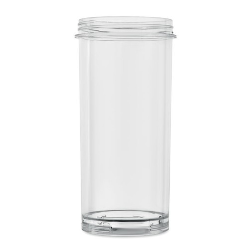 Gobelet mixeur de 600 ml en PCTG avec couvercle en PP, couvercle supplémentaire et poignée. Comprend un moteur de 18000 tours/minute, 2 batteries rechargeables et un câble Type- C. Capacité 600ml.