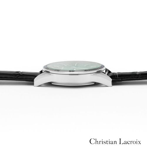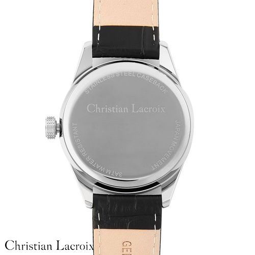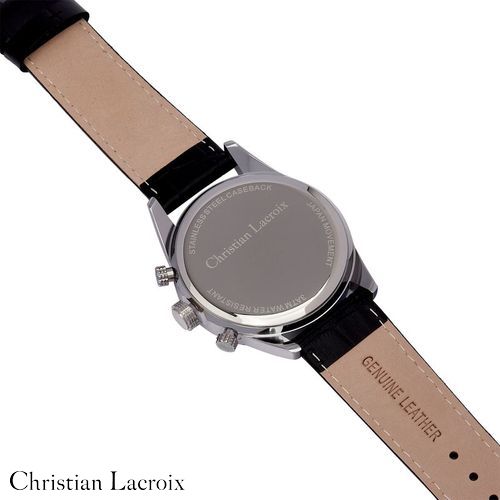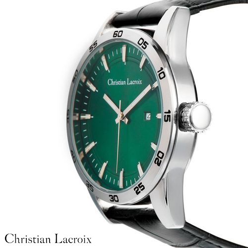 Voici la montre "Tempus" de Christian Lacroix, une fusion parfaite de style et de fonctionnalité. Ce garde- temps présente un design élégant avec un bracelet en cuir véritable noir présentant un motif de type croco, un boîtier chromé et un cadran ensoleillé vert foncé saisissant. Disponible en version dater ou chrono, le boîtier en alliage avec un fond en acier inoxydable garantit la durabilité, et avec une résistance à l'eau de 3 ATM, la montre "Tempus" est prête pour toutes les occasions. La sophistication intemporelle de Christian Lacroix rehausse votre garde- robe.