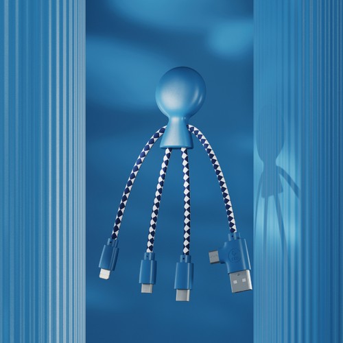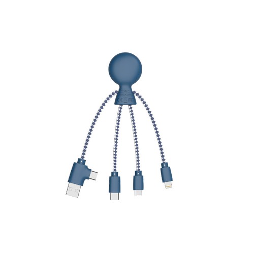 Notre best seller Xoopar: l'essayer c'est l'adopter ! Pour les specs : Multi- câbles Entrée : USB- C et USB Sortie : lightning, USB- C & Micro- USB Compatible avec tout type d’appareil (smartphone, uteur sans fil, GoPro…) Inclus, des stickers emoji, vous permettant de customiser votre produit selon vos humeurs ! Produit garantie 2 ans Le câble de charge multi- connecteurs au look/design rigolo est développé dans une démarche de progrès. On vous explique tout : Audit carbone réalisée sur le cycle de vie du produit: 88g de CO2 dégagés sur tout le cycle vie du produit, soit autant que l’utilisation de 19 feuilles de papier A4 Packaging en papier certifié FSC issu d'une exploitation forestière, disposant d'une gestion durable Matières : 61% Plastique recyclé GRS - Marquage Made in France Encres certifiées NF71.3 Tampo 1 couleur et + (numérique) Possibilité de marquage recto et/ou verso