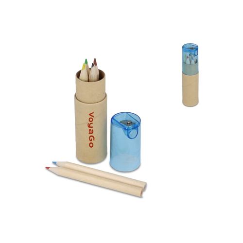 Crayons de couleur dans un tube en carton avec couvercle taille-crayon
