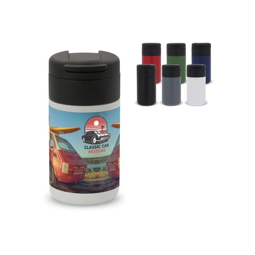 Mug isotherme double paroi sous vide de la série 'Flow'. Le mug avec couvercle rabattable est 100% étanche et facile à transporter. Les parois intérieures et extérieures sont en acier inoxydable haute qualité. Cela maintient la boisson à la température souhaitée plus longtemps. Les boissons resteront chaudes jusqu'à 12 heures et/ou froides jusqu'à 24 heures.Matières :Acier inoxydable, PP