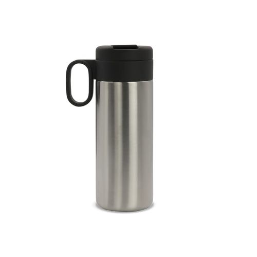 Mug isotherme double paroi sous vide de la série 'Flow' avec poignée. Le mug avec couvercle rabattable est 100% étanche et facile à transporter. Les parois intérieures et extérieures sont en acier inoxydable haute qualité. Cela maintient la boisson à la température souhaitée plus longtemps. Les boissons resteront chaudes jusqu'à 12 heures et/ou froides jusqu'à 24 heures.Matières :Acier inoxydable, PP