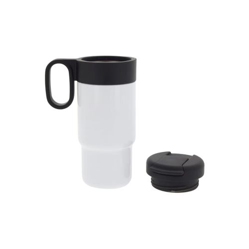 Mug isotherme double paroi sous vide de la série 'Flow' avec poignée. Le mug avec couvercle rabattable est 100% étanche et facile à transporter. Les parois intérieures et extérieures sont en acier inoxydable haute qualité. Cela maintient la boisson à la température souhaitée plus longtemps. Les boissons resteront chaudes jusqu'à 12 heures et/ou froides jusqu'à 24 heures.Matières :Acier inoxydable, PP