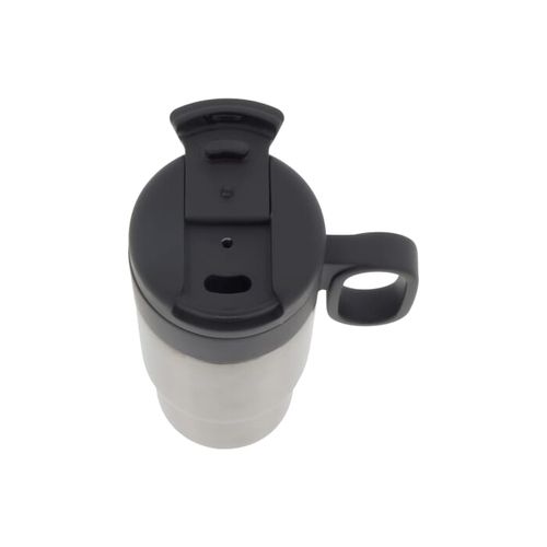 Mug isotherme double paroi sous vide de la série 'Flow' avec poignée. Le mug avec couvercle rabattable est 100% étanche et facile à transporter. Les parois intérieures et extérieures sont en acier inoxydable haute qualité. Cela maintient la boisson à la température souhaitée plus longtemps. Les boissons resteront chaudes jusqu'à 12 heures et/ou froides jusqu'à 24 heures.Matières :Acier inoxydable, PP