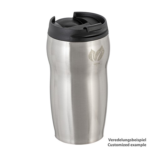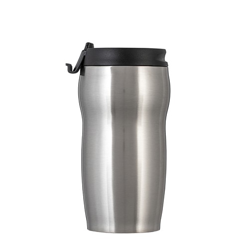 Ce mug isotherme en acier inoxydable à double paroi avec isolation sous vide en cuivre est un gobelet à emporter économique mais de qualité avec un couvercle à clapet. L’extérieur du mug en acier inoxydable de qualité est recouvert d’un revêtement anti- traces de doigts et sa forme légèrement incurvée offre une bonne prise en main.