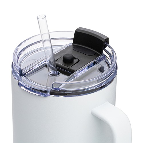 Découvrez le mug isotherme RETUMBLER- Grand Canyon ! Avec une capacité impressionnante de 1200 ml, il est le compagnon idéal pour les longues périodes de soif. Le mug recouvert de poudre est fabriqué à partir d'acier inoxydable recyclé, de plastiques AS et PP. Grâce à l'isolation sous vide en cuivre à double paroi, la boisson reste froide pendant jusqu'à 32 heures ou chaude pendant jusqu'à 9 heures. Le mug est particulièrement adapté pour les rafraîchissements estivaux. Préférez- vous qu'il soit glacé ? Grâce à une grande ouverture , les glaçons peuvent être facilement ajoutés, et ils restent congelés pendant jusqu'à 48 heures grâce à l'excellente isolation du mug. Le couvercle enfichable multifonction antifuites dispose à la fois d'une ouverture refermable pour la paille et d'une ouverture rabattable. Cela vous permet d'utiliser le mug non seulement à la maison ou au bureau, mais aussi en déplacement. Astuce : la paille Tritan incluse est dotée d'un bouchon utile en bas pour éviter qu'elle ne glisse. Ainsi, la paille reste bien en place même avec des boissons gazeuses. RETUMBER- Grand Canyon offre une zone de logo bien visible tout autour du corps du mug. La publicité peut être réalisée par tampographie, impression UV ou gravure laser. Astuce : tous les composants de ce mug peuvent être nettoyés en toute sécurité au lave- vaisselle.