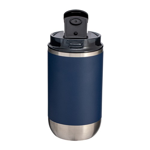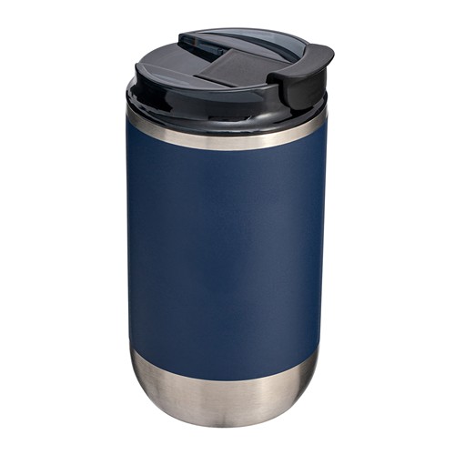 Ce mug thermo de 360 ml avec couvercle rabattable est le compagnon idéal pour les déplacements et la voiture. Le corps est en acier inoxydable recyclé, tandis que le couvercle est en polypropylène et en plastique AS. Le système de fermeture par rotation, associé à un joint en silicone sur le couvercle, garantit l'étanchéité de la tasse.