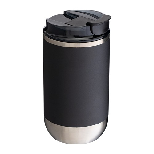 Ce mug thermo de 360 ml avec couvercle rabattable est le compagnon idéal pour les déplacements et la voiture. Le corps est en acier inoxydable recyclé, tandis que le couvercle est en polypropylène et en plastique AS. Le système de fermeture par rotation, associé à un joint en silicone sur le couvercle, garantit l'étanchéité de la tasse.