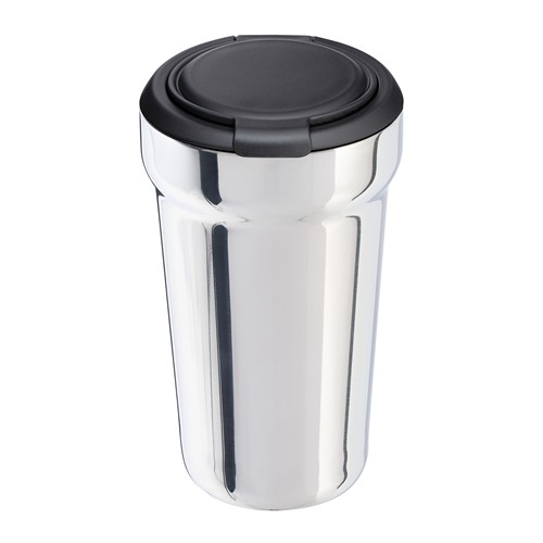 Avec RETUMBLER- VIVERO STEEL, un design propre à REFLECTS®, vous offrez à vos clientes et clients un mug isotherme avec une grande capacité de remplissage de 350 ml et une fonctionnalité exceptionnelle. Le mug en acier inoxydable est disponible en trois variantes : avec un revêtement par poudre noir, un revêtement par poudre blanc et une finition miroir métal. Le revêtement en poudre confère au mug isotherme un aspect moderne et mat ainsi qu'une bonne résistance aux rayures. La finition miroir spéciale par polissage brillant permet de donner au mug un aspect absolument remarquable. Le couvercle est disponible en noir.