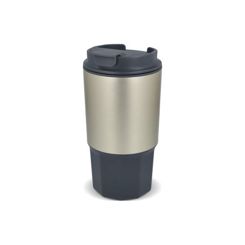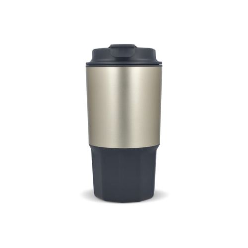 Emportez vos boissons avec ce mug de voyage à double paroi. L'intérieur en plastique isolant garde la température idéale, tout en restant léger et facile à transporter. Avec un couvercle anti-éclaboussures, il est parfait pour les déplacements. Durable, réutilisable et conçu pour la vie en mouvement. Livré dans un coffret cadeau.Matières :Silicone, Acier inoxydable