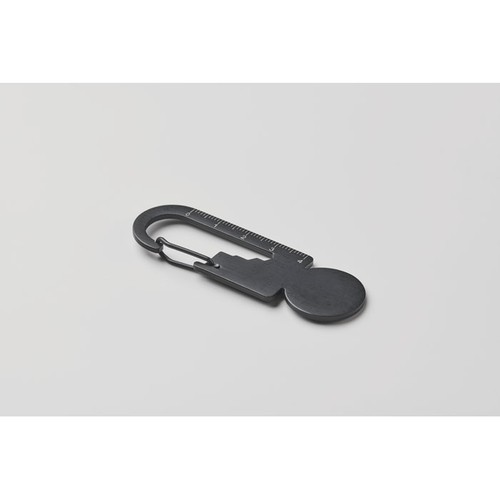 Jeton de chariot avec porte- clés en acier inoxydable recyclé (90% acier inoxydable recyclé et 10% d'acier inoxydable) et outil multifonction comprenant un ouvre- bouteille, une règle et une clé hexagonale 5,5mm, 7mm et 8mm.